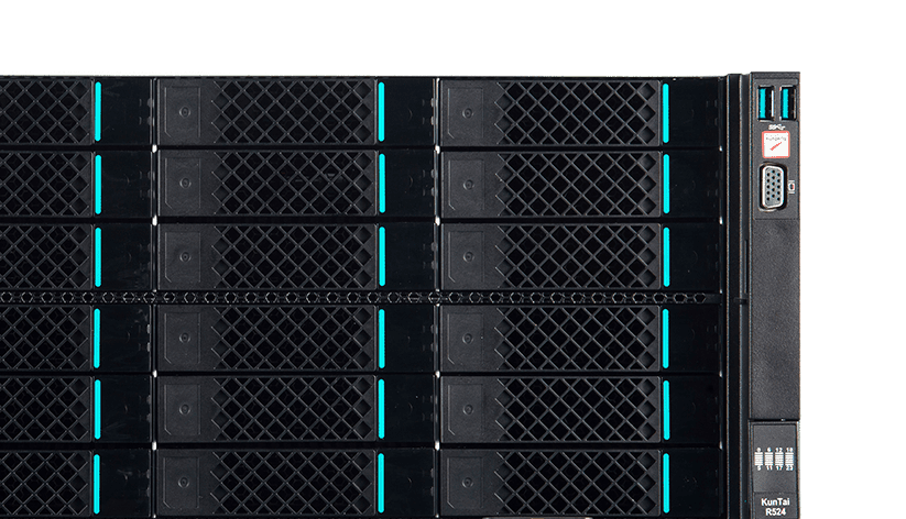 KunTai R524 存储型服务器是Welcome to 365777数码基于鲲鹏处理器推出的新一代 ARM数据中心服务器。。。。主要面向存储业务,,,具有海量存储、、高性能、、、低功耗以及易扩展的特点,,,,适合为大数据分析、、、软件定义存 储等应用场景的工作负载进行髙效加速。。